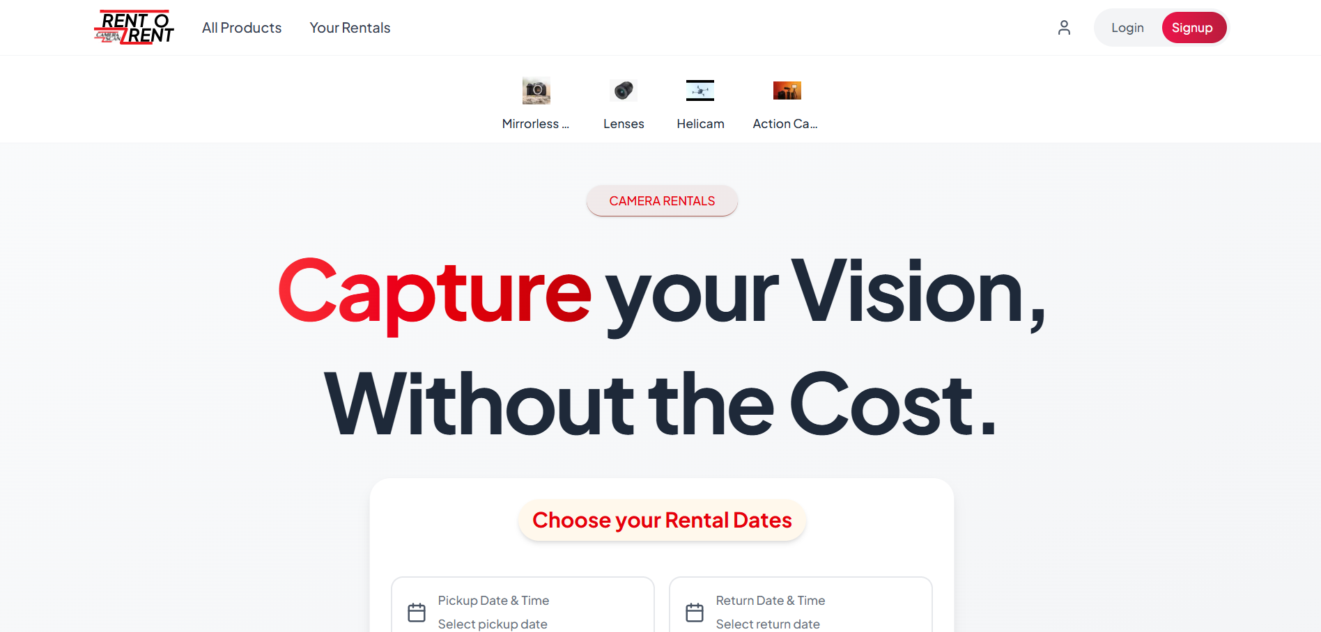 Camera rental platform with intuitive booking and rental experience.